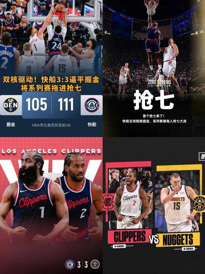 另外快船的内线巨兽祖巴茨和科林斯,对抗约老师和戈登虽然吃点亏,可是已经没有上赛季那么吃亏了,俩人半场合砍17分10个篮板也是很拼的。关键在于快船在体型上终于能够和掘金队抗衡了,身高最矮的哈登1米96,剩下4个人都接近两米或者两米以上的。首先你从身高体型上来说,快船是不逊色于掘金队,能跟对面打了。